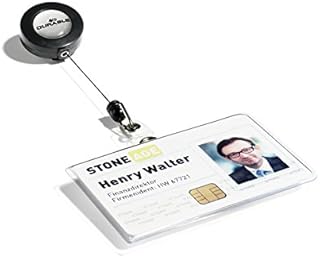 Durable 801619 Porte-carte de Sécurité 1 Carte Format 54 x 86 mm Pochette PVC Semi-rigide Orientation Paysage avec Enrouleur 8152 Cordon 80 cm Boîte de 10