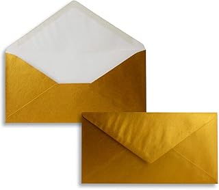 Enveloppes DIN Long – Doré métallique haute qualité 110 g/m² – 220 x 110 mm – indéformable – nassklebung – QUALITÉ marque : neuser couleur heureux dl Gold Metallig