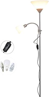 Lampadaire LED Avec Lampe De Lecture Rotative À 360 °, Dimmable LED Lampadaire Sur Pied Avec Télécommande (12W & 5W, Argent, 111V~240V, Réglable En Hauteur, E27 Et E14, Iron Art)