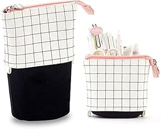 Porte-Crayon Stand - Toile Télescopique Plumier Cartoon Beau Sac Mignon Pouch Animaux Cosmétiques Papeterie Organisateur Boîte avec Fermeture à Glissière pour Garçons et Filles (Black and White Plaid)