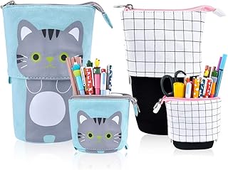 iSuperb 2 Pack Trousse à Crayons Cat Rétractable Trousse Télescopique Crayon étui Support Trousse à Maquillage Grand Pencil Case Scolaires Papeterie Organisateur Bag (Bleu + BlancPlaid)