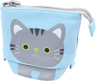 Gaoominy Toile de Dessin nimé Mignon Chat TéLescopique Sac Pochette Sac Papeterie Stylo éTui vec Fermeture à GlissièRe -Bleu