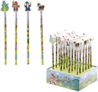 Lot de 4 Crayons & 4 Gommes Chevaliers & Magiciens - Crayons à Papier