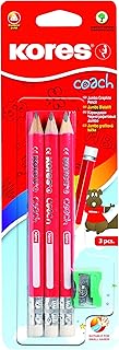 Kores Coach Lot de 3 Crayons papier Jumbo HB triangulaire avec embout Gommes 92533