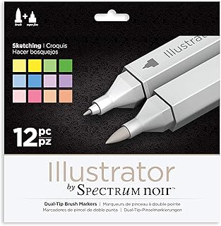 Spectrum Noir SPECN-IL12-SKE Illustrator Illustrateur Stylos Marqueurs Alcool Double Plume-Sketching-Lot de 12, Plastique, Taille Unique