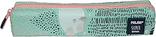 Clairefontaine 410047C - Une petite pochette plate (trousse) 2 compartiments Kleo-Pathra 13x9 cm en véritable cuir d'agneau, Argent