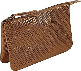 410045C - Une petite pochette plate (trousse) 2 compartiments Kleo-Pathra 13x9 cm en véritable cuir d'agneau, Bronze