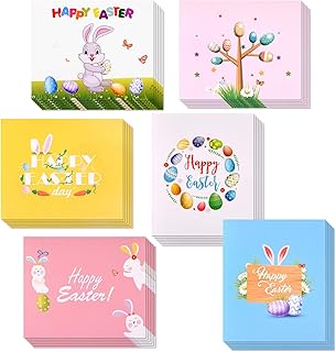 TUPARKA 36 Pcs Joyeuses Pâques Cartes Lapin De Pâques Oeuf De Pâques Conception De Lapin De Pâques Cartes De Voeux De Pâques avec 36 Enveloppes et Autocollant Pour Enfants