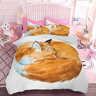 Hiiiman Parure de lit avec fermeture éclair Motif renard mignon et créature amusante pour enfants Motif aquarelle (3 pièces, grande taille king size) avec housse de couette et taie d'oreiller