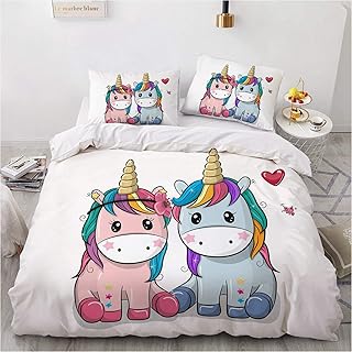 Parure de lit avec housse de couette en microfibre douce avec fermeture éclair dissimulée, motif licorne, motif animal - Pour enfants et enfants - 220 x 240 cm
