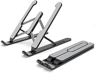 Zueyen Support pour ordinateur portable, pliable et portable 6 hauteurs réglables avec sac de transport, en aluminium ventilé ergonomique, pour ordinateur de bureau et ordinateur portable 17,8-15,6'