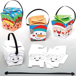 Baker Ross AX468 Boîtes De Friandises De Noël À Colorier Pour Enfants - Paquet De 12, Sacs-Cadeaux De Noël Pour Enfants, Boîtes De Cadeaux