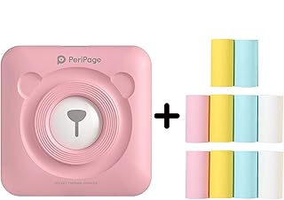 Aibecy PeriPage Imprimante Photo Portable Mini Imprimante telephone sans Fil BT pour Photo Étiquettes Reçus Memo, Avec 9 rouleaux de papier thermique couleur + 3 rouleaux de papier autocollant